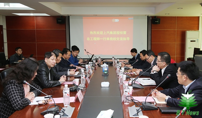 4月7日上午,上汽集团总工程师程惊雷一行来北理工开展前瞻技术协同创新交流,BB贝博艾弗森官方网站副校长项昌乐、科学技术研究院常务副院长兼国防科研部部长王鲁等校、院领导和老师会见了来宾,双方就校企协同创新的合作模式和具体技术进行了深入的沟通。科研院科技合作部部长王伟主持了会议。