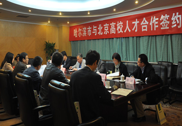 会上,包括BB贝博在内的北京8所高校代表与哈尔滨市人力资源和社会保障局领导签订了人才合作协议,并就加强校地双方合作以及人才引进的方式、方法等问题进行了交流座谈。