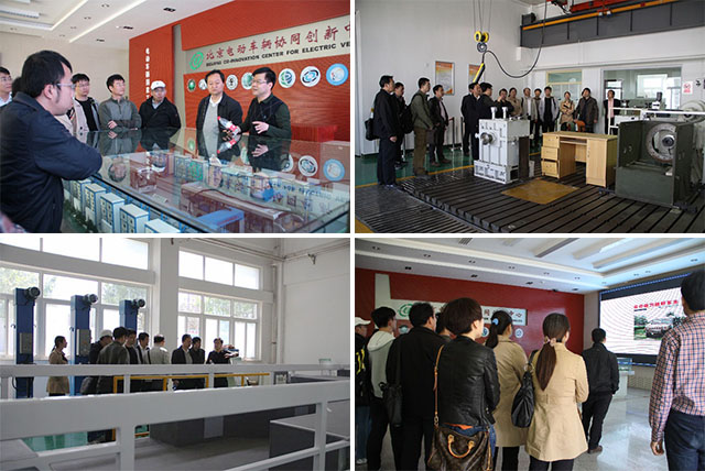 首先,胡纪滨副院长对自动化学院教师表示热烈欢迎,之后,介绍了北京电动汽车协同创新中心的发展历程和现状,并播放了录像宣传片。接下来,胡纪滨副院长带领大家参观了电机系统控制、电传动、车辆运行监测、电池与充电系统、车辆性能测试、车辆道路模拟等实验室,边参观边讲解,同时也回答我院教师的问题。