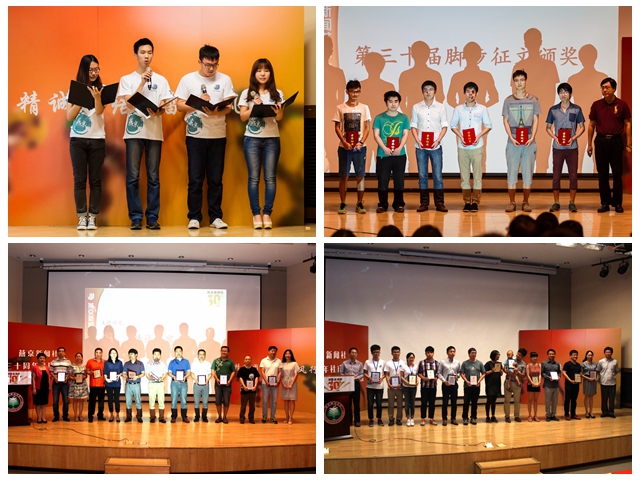 活动现场,四名学生为大家深情朗诵《致燕京新闻社》,表达了对作为一名燕京新闻社成员的自豪以及对其未来的美好憧憬。社庆庆典活动中,举办了第三十届“脚步征文”颁奖仪式,蔺伟为获奖学生颁发了证书和奖品。作为社庆活动的一部分,燕京新闻社在七号楼一层大厅举办了主题新闻展,围绕“新闻”的发展与“校园新闻”的发展,展现了北京高校新闻类社团的风雨历程。