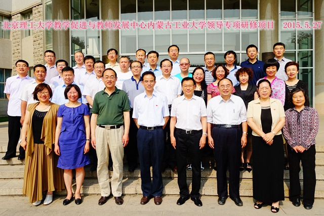 2015年5月25至29日,BB贝博艾弗森官方网站教学促进与教师发展中心(CFD)受内蒙古工业大学委托,为其领导干部举办了为期一周的专项研修班。此项活动旨在发挥国家级教师教学发展示范中心的辐射作用,为其他兄弟高校服务;响应国家一带一路战略,促进中部地区高等教育发展。内蒙古工业大学由栗文义副校长、峻峰副校长带队,组织部、教务处、科技处、研究生院、信息化建设与管理中心和图书馆等部门,各学院教学、科研院长等共32名中层领导参加了本次研修。学习期间,BB贝博艾弗森官方网站党委书记张炜,副校长赵平、孙逢春、杨树兴,校长助理郝志强,组织部部长张笈等先后来到教学促进与教师发展中心看望了内蒙古工业大学的学员们。