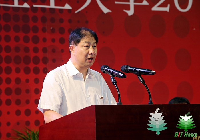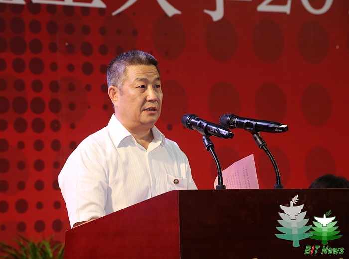长江学者特聘教授、自动化学院王美玲代表全体教师向毕业生送上了真挚的祝福,并结合自己在北理工求学和任教的经历与大家分享了“善良”和“付出”的人生格言,勉励毕业生响应李克强总理“大众创业、万众创新”的号召,抓住机遇,取得更多成果。