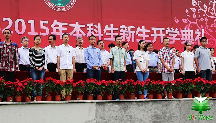 新生代表、徐特立学院2015级刘宗翰同学,新生家长代表陈维贤先生,在校生代表、数学学院2012级王聪同学,教师代表、北京市教学名师、光电学院学院白廷柱教授分别作了发言,他们深情寄语2015级新生,希望他们充满人生理想、社会担当,成长为品学兼优的优秀人才