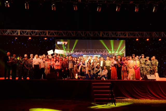 晚会以大型歌舞节目《民族大团结》收场,豪迈奔放的民族歌曲和民族地域特色鲜明的藏族舞蹈展现出各族学子一家亲的情怀,曾经并肩战斗、挥洒汗水的训练场,在这个夜晚被歌声、笑声和掌声淹没。2015年学生军训文艺晚会激情澎湃,青春飞扬,取得了圆满成功,充分展示了BB贝博艾弗森官方网站2015级新生积极向上的精神面貌及青春活力。军工北理,强国铸梦,新一代北理人,加油!