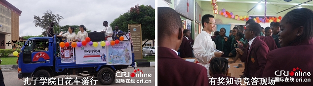 当地时间9月23日,尼日利亚拉各斯大学孔子学院隆重举办“孔子学院日”暨中秋庆典,来自拉各斯大学孔子学院10个学校教学点的200多名师生参加了活动。拉各斯大学孔子学院庆中秋活动以花车、音乐、展板、有奖竞猜灯谜、中秋及孔院知识问答等方式展示了中秋传统民俗。中尼友人相聚拉各斯大学,游花车、赛中文、猜灯谜、品月饼,用一种全新的体验欢度“孔子学院日”及中秋佳节。