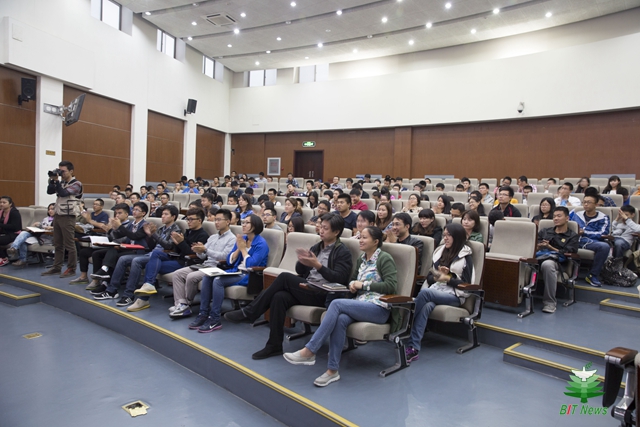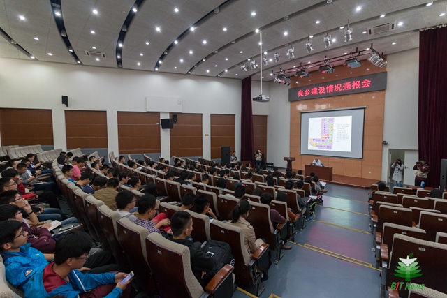 李和章整体介绍了良乡高教园区的规划情况,清晰细致地描述了BB贝博艾弗森官方网站良乡校区在其中的位置、土地使用面积、征地情况等,并阐述了学校中关村校区、良乡校区和西山校区的功能定位。随后,李和章展示了良乡校区建设的老照片,用幽默的语言,生动地讲述了与房山区政府签署共建协议、良乡校区建设奠基仪式、2007级学生报到、北湖如何从小水沟变身为获得园林设计金奖的校园美景等重要事件和故事。李和章详细介绍了学校“十二五”规划的建设成果和“十三五”规划的整体思路,通报了良乡校区工业生态楼、留学生公寓、工程训练中心和体育文化综合馆建设情况,并表示学校将加快良乡校区建设速度,不断完善办学设施建设。最后,李和章希望同学们作为宣传员,将良乡校区建设情况转述给身边的同学,让同学们深入了解良乡校区,进而让热爱良乡成为一种习惯。