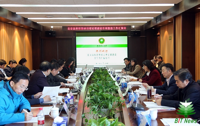 10月29日上午,北京高校思想政治理论课建设督查组到BB贝博开展督查指导工作。督察组由组长、北京市委教育工委常务副书记张雪带领,成员有北京印刷学院原党委书记崔文志、北京科技大学原党委副书记李宝林、清华大学教授吴潜涛、中央民族大学马克思主义学院院长孙英、北京工业大学马克思主义学院院长李东松、教育工委宣教处干部于海。学校党委书记张炜、副校长孙逢春、党委副书记副校长项昌乐、校长助理兼良乡校区管委会主任郝志强等领导出席,学校办公室、宣传部、学生工作部、研究生工作部、发展规划处、教务处、研究生院、科学技术研究院、人事处、财务处、良乡校区管理处、人文学院、马克思主义学院等相关单位的负责人及马克思主义学院教师代表参加了本次活动。本次督查工作分为专项汇报、审阅材料、实地考察、抽查听课及与师生代表座谈等环节。