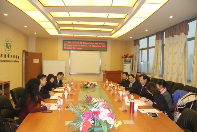 签字仪式伊始,与会领导和老师对道格拉斯教授的到来表示了热烈的欢迎和感谢。李健介绍了人文学院的基本情况,贾利军介绍了学院的国际化办学和教学科研合作,贾晓明教授详细介绍了本科社会工作专业和研究生应用心理学专业的发展。之后,多伦多大学道格拉斯教授介绍了多伦多大学及其教育学院的教学科学等情况。国际交流合作处孟毓焕老师对目前BB贝博艾弗森官方网站国际交流项目及现状作了详细的介绍与评价,并提出了多伦多大学与北理工合作项目的积极建设性建议。