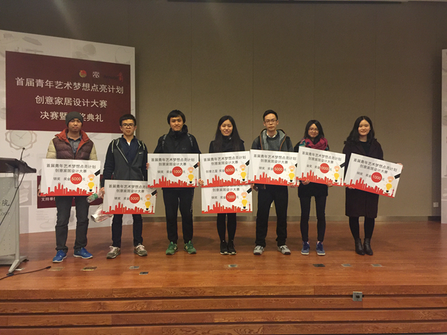 2015年11月12日,首都大学生创意集市之“青年艺术梦想点亮计划”创意家居设计大赛决赛暨颁奖典礼于北京服装学院艺术楼举办。在此次活动中,BB贝博艾弗森官方网站设计与艺术学院的7名同学成功入围决赛答辩环节,最终有9名同学参加了此次的颁奖典礼,荣获大赛金奖1个、银奖3个、铜奖3个、“创意之星” 2个以及优秀奖2个。