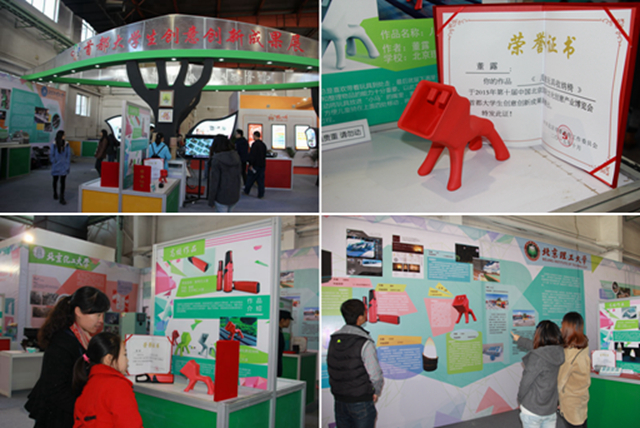 在激烈的角逐中,BB贝博共9名同学获奖,2015级研究生董露同学获得唯一金奖,2012级本科生谭耀东、闫茂铠、钱薇威三位同学获得银奖3个,2012级本科生李汝偲、阎海伟、钟疏影三位同学获得铜奖,钱薇威、李汝偲两位同学获得“安利创意之星” (此奖项将有机会组织生产并投入市场),于丹丹、卿光华两位同学获得优秀奖。其中董露同学的作品——“马儿快跑”儿童玩具收纳椅作品还参与了由文化部、国家新闻出版广电总局和北京市政府共同主办的第十届中国北京国际文化创意产业博览会。