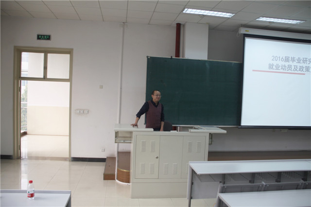 金军书记全面分析了当前毕业生就业状况,并针对学生就业出现的新情况新问题进行指导。金书记指出,面对目前就业供需矛盾加剧、在京就业难度加大、结构矛盾依然突出等现实状况,每位毕业生应当辩证看待问题,结合“十三五”发展规划分析就业形势,重视朝阳产业与潜力行业;应当目光长短结合,根据自身条件来制定合理就业目标,处理好人生观、价值观和自我选择之间的关系。他鼓励同学们要不断的丰富和提升自己的学识,希望同学们多与导师和辅导员、班主任老师沟通交流。学院会尽在就业辅导和政策上给予同学们最大的支持。