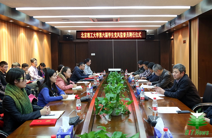 12月9日,学校纪委在良乡校区举行第六届学生党风监督员聘任仪式。校纪委书记杨志宏、校长助理郝志强、纪委副书记魏名山、学工部部长郭彦懿、研工部部长郝洪涛、良乡管理处处长徐承俊、基础教育学院党委书记朱光辉、纪委监察室正处级纪检员杨晖、组织部副部长周波、校团委副书记方蕾等相关部门负责人出席聘任仪式,20名来自各学院的学生党风监督员代表参加了聘任仪式。聘任仪式由纪委副书记魏名山主持。
