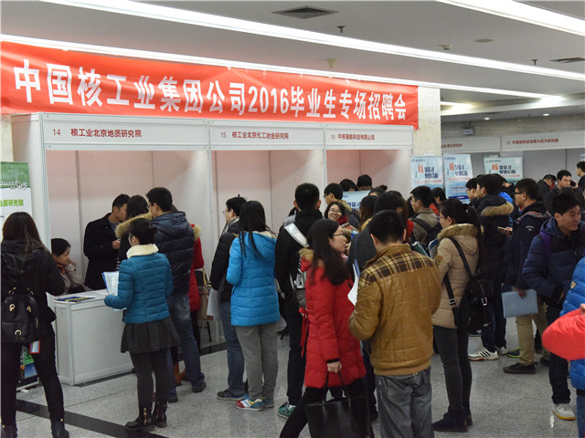 12月22日上午,BB贝博在体育馆南厅举办了中国核工业集团公司专场招聘会。包括中国核电工程有限公司、中国原子能科学研究院、中国原子能工业有限公司、中国核科技信息和经济研究院在内的27家单位参加了本次招聘会。