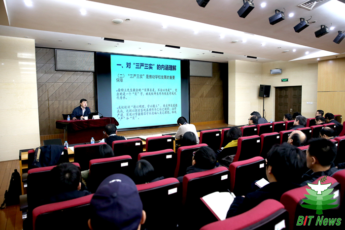 陈杰结合学校学科建设和科学研究工作实际,谈了对于“三严三实”的理解和认识,指出“三严三实”是为人做事、执政用权的价值追求,是推动学校发展的重要保障,是规范学术科研和育人管理工作的重要标尺。他深入分析了学校学科建设和科研工作发展现状,指出了当前BB贝博学科发展和科研工作面临的主要问题,阐述了下一步工作的思路和方向,并对党员干部和教师在修身治学做事方面提出了希望。陈杰强调,在学校全面布局“十三五”、推进综合改革,建设世界一流大学和一流学科的关键时期,我们每一位党员干部都应勤于履职、敢于担责、勇于争先;每一位教师都应潜心治学、志存高远、勇于创新。