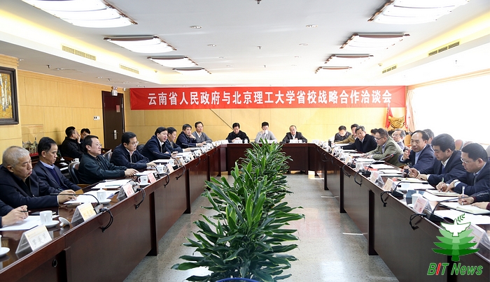 2016年1月5日上午,云南省委常委、高校工委书记李培一行来BB贝博调研并洽谈省校全面战略合作事宜,党委书记张炜、校长胡海岩、副校长孙逢春、副校长杨树兴、副校长李和章、副校长陈杰、校长助理郝志强参加调研。