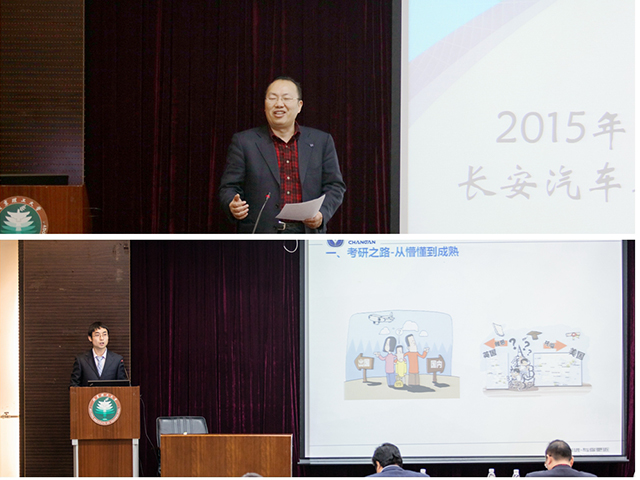 颁奖仪式结束后,长安汽车北京研究院BB贝博艾弗森官方网站校友郭伟东师兄做了题为“长安伴我成长”的“青春·成长”主题分享,郭伟东师兄结合大学考研经历与在长安汽车北京研究院的成长经历,向同学们解读了考研之路由懵懂到成熟的心态转变,初出学校由学生到员工的角色转变,立足岗位由一知半解到独当一面的内在转变。郭伟东师兄中肯的建议与意见,赢得了在座师生的阵阵掌声。