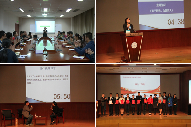 此次比赛分为初赛和决赛两个阶段。前期由北京市各高校初选推荐,共有57名专职辅导员参加比赛,经过基础知识测试和网文写作两个环节笔试,其中20名辅导员进入决赛。决赛通过主题班会、案例分析、主题演讲、谈心谈话等四个环节,全面考察辅导员的各项工作能力。在主题演讲环节,张扬运用互联网思维,结合网络热议事件的讨论,深刻诠释了“勇于担当 为国育人”的主题。在谈心谈话环节,面对“学生推优入党,家长前来送礼”的情景再现,张扬条理清晰地解答家长的疑虑,充分展现了一名辅导员的职业素质。最终凭借四个环节的综合表现,取得了优异的成绩,荣获本次大赛二等奖。