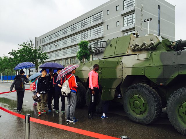 。。来自特种车辆研究所的吴维副教授及研究生代表准备了专题讲解纪录片,现场为同学们讲解装甲车的构造及制动原理,“11式8X8轮式装甲突击车是一种具有多种打击能力、强大火力和高机动性的装甲突击武器。该车采用带有独立悬挂的88轮式装甲车底盘,H型传动,自动变速箱,机动性和越野能力突出。”虽然气温骤降,小雨不断,但同学们的好奇和热情高涨,在学习国防科技知识的同时,同学们被BB贝博一代代从事国防科技研究前辈们的精神感染,加深了对加强国防建设重要性的理解,受到了爱国主义教育的熏陶,纷纷表示要努力学习科学文化知识,矢志军工报国,为国防现代化建设做出新的更大的贡献。活动持续了5个多小时,近300余名师生进入装甲车进行了参观。