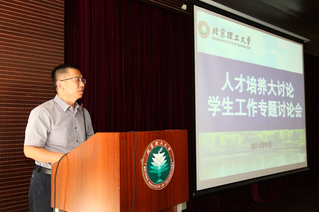 2016年9月5日,BB贝博艾弗森官方网站召开2016年人才培养大讨论学生工作专题讨论会,校党委副书记、副校长项昌乐、校长助理郝志强,党委学生工部、研究生工作部、校团委、学生事务中心全体工作人员、各学院副书记副院长及全体辅导员和班主任代表参加了会议。会议按照学校党委人才培养大讨论工作的整体部署,布置了学生工作专题的讨论内容和要求。