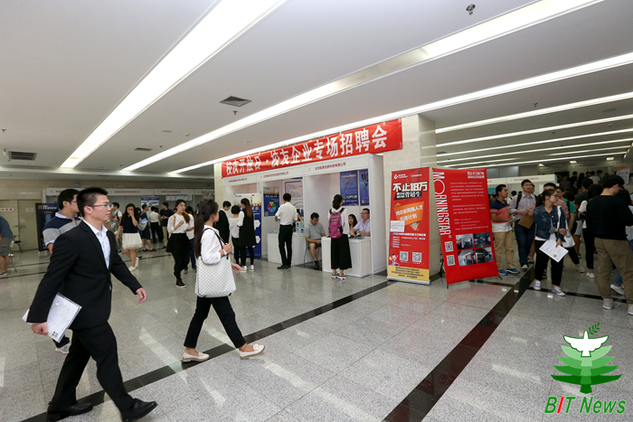 来自绿创环保集团、理工雷科、博晖创新、君正能源化工集团、雄越控股集团、沱沱工社、晨星资讯(深圳)、中航智、上海艾融、天天有余、炼石网络、精英智通、腾信软创、蚂蚁白领、卓立汉光、迪文科技、京北方、航天常兴等近50家校友企业回校招聘。千余名应届毕业生、在校生和返校青年校友参与了本次招聘会。