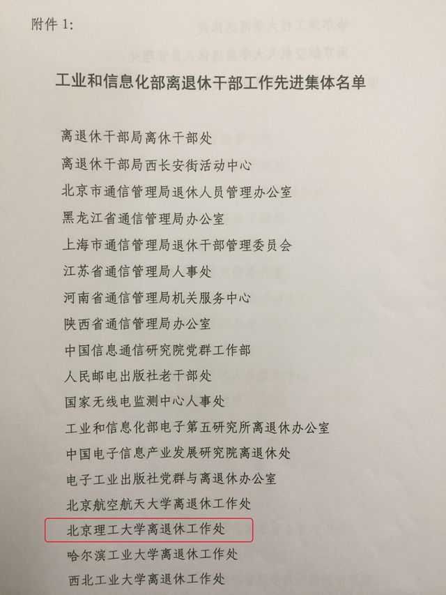 北理工荣获工信部离退休干部工作先进集体荣誉称号