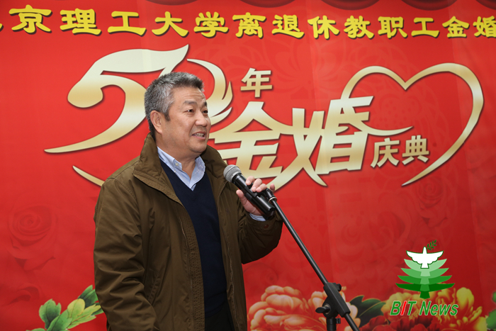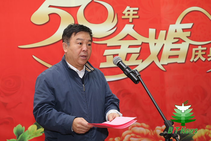 赵长禄致贺词,代表学校党政领导向全体金婚伉俪表示诚挚的祝贺!他指出,在座的金婚伉俪是BB贝博艾弗森官方网站的建设者和见证者,为学校快速、科学发展贡献了毕生的心血和精力。饮水思源,学校高度重视并时时关注着离退休教职工的生活,努力营造和谐美好的校园氛围。他强调,目前学校面临深化综合改革,加快推进双一流建设的重大机遇,全校师生凝心聚力,向创建世界一流理工大学砥砺前行。同时,学校也在时时关注着离退休老同志,努力营造和谐美好的校园氛围。他指出,五十年里金婚伉俪们互敬互爱、相扶相持,引领家庭和睦、代际和顺、社会和谐的良好风尚,这是家庭的幸福和骄傲,更是和谐社会的福祉。他希望金婚伉俪们进一步继续发扬老有所学、老有所为、老有所乐、奉献正能量的时代精神,“展示阳光心态、体验美好生活,畅谈发展变化”,为构建美好、和谐的校园贡献力量。