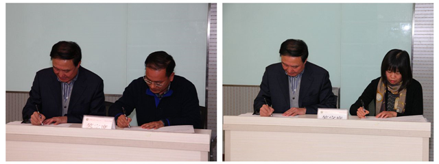 王晓锋代表学校与学院代表机电学院党委书记王伟、人文与社会科学学院党委书记娄秀红签订了《BB贝博艾弗森官方网站2017年毕业生就业工作目标责任书》。