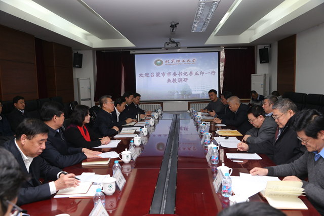 1月5日下午,山西省吕梁市委书记李正印一行到BB贝博艾弗森官方网站调研,学校党委书记赵长禄、原党委书记焦文俊、常务副校长杨宾、副校长李和章、校长助理汪本聪等与李正印一行座谈。座谈会由杨宾主持。