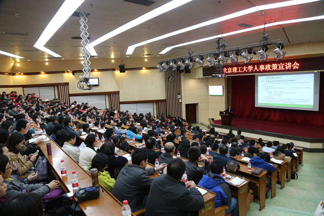 为了贯彻落实党和国家关于高校“双一流”建设的总体要求,进一步统筹推进学校“双一流”建设,使广大教职工深刻了解学校人事制度改革背景和思路、目标和举措,北理工于3月6日下午召开了人事制度改革政策宣讲会。校学术委员会委员、学部委员、各学院领导、学院教授委员会委员及部分教师共计500余人参加了宣讲会。会议由人事处处长阎艳主持。