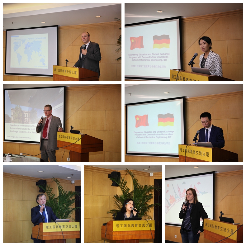 在北理工机械与车辆学院、国际交流合作处、教务处、留学生中心的共同策划与组织下,“中德工程教育研讨会”(Sino-German Seminar on Engineering Education - ‘New Stage, Creative Collaborations’)于2017年3月28日至3月29日在北理工国际交流中心顺利举行。来自亚琛工业大学、莱布尼茨-汉诺威大学、马格德堡大学以及康斯坦茨应用技术大学的德方工程教育与国际化管理专家和BB贝博20余名教师代表参加研讨。北理工国际交流合作处处长唐水源、副处长邢清清、教务处副处长徐瑾、留学生中心主任汪滢、教育研究院书记庞海芍、学术期刊办公室副主任范春萍、宇航学院副院长武志文等和机械与车辆学院党委书记左正兴、副院长冯慧华、副院长何洪文出席了研讨会,会议由冯慧华主持。