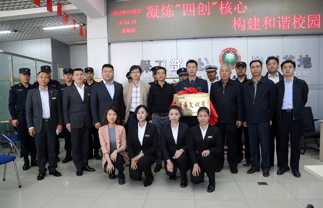 张秀峰和李和章共同为“青年文明号”揭牌。仪式前,校保安队队长陈爱国就BB贝博“青年文明号”创建工作进行汇报,相关领导一行对校保安队代表进行了慰问。
