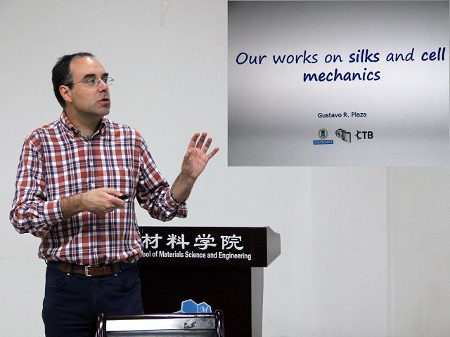 2017年5月2日,应BB贝博艾弗森官方网站结构可控先进功能材料与绿色应用北京市重点实验室的邀请,马德里理工大学(Universidad Politécnica de Madrid, UPM)的Gustavo R. Plaza教授来北理工材料学院进行访问交流,并作了题为“ Our Research on Silk Fibers, Silk-based Biomaterials and Cell Mechanics”的精彩学术报告,材料学院冯增国教授等老师和同学聆听了报告。