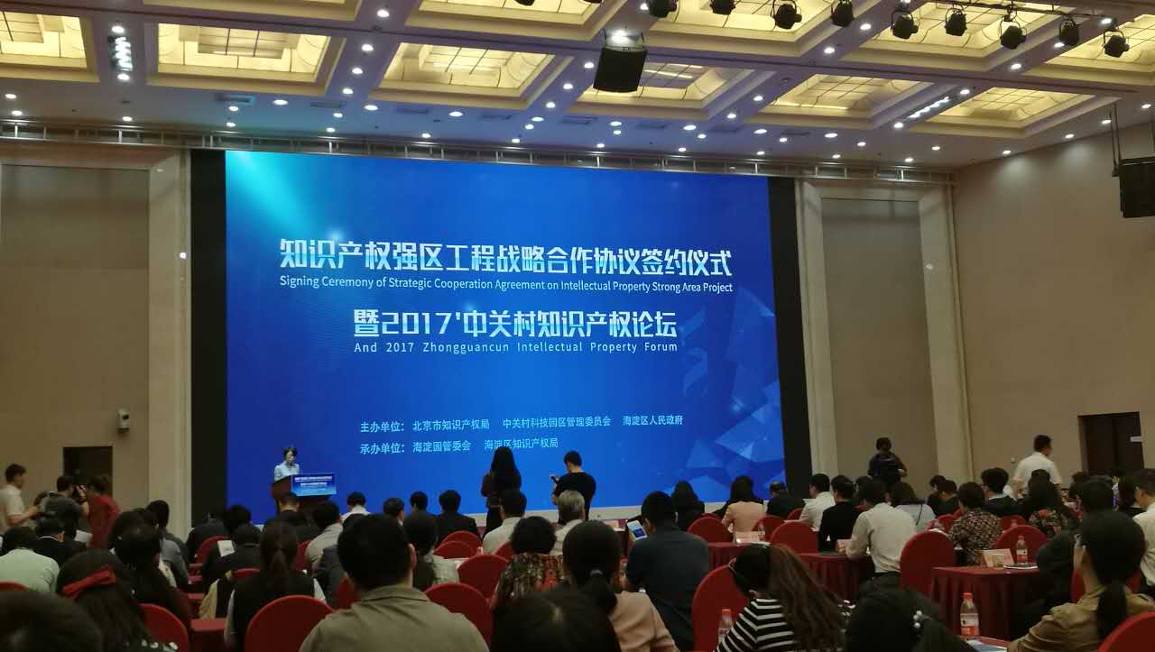 2017年5月2日,由北京市知识产权局和海淀区人民政府共同主办的市区两级共同推进“知识产权强区工程战略合作协议签约仪式暨2017中关村知识产权论坛”在中关村国家自主创新示范区展示中心举行。北京市委常委、副市长阴和俊,北京市知识产权局、中关村管委会、海淀区等相关单位领导出席活动。