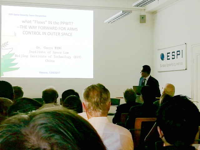 此前,经外交部、国家国防科工局委派,作为中国代表团成员、法律顾问,王国语今年连续参加联合国外空委科技小组委员会届会、法律小组委员会届会和外空委大会。期间还参加了欧洲空间政策研究中心组织的国际研讨会以及海牙空间资源治理工作组会议。2017年2月,受国防科工局邀请,王国语作为中国代表团成员参加了联合国外空委科技小组委员会第53届会议,并作为中方谈判专家,参加了联合国外空委外空活动长期可持续性工作组的谈判工作,同时担任中国代表团联系人,协调组织和全程参与了中美和中俄的双边谈判。今年3月,受外交部邀请,王国语参加了联合国外空委法律小组委员会第56届会议。联合国外空委法律小组委员会会议是制定外空国际规则的最高平台,同时负责组织关于外空热点法律问题的讨论,例如小卫星管理、外空采矿、空间碎片主动清除、空间交通管理等。4月,王国语作为唯一的中方专家受荷兰莱顿大学邀请,参加了海牙外空资源治理工作组第三次会议。海牙工作组是由多家国际知名智库2015年联合成立的半官方的国际规则研究和制定平台,工作组遴选20名各国政府官员和法律专家及顾问,开展外空资源治理的国际规则研究和制定工作,对于各国探月工程、深空探测工程的开展将产生重要影响。6月13日,受欧洲空间政策研究所(ESPI)邀请,在其维也纳总部参加了“外空安全相关问题”的研讨会并做报告。该研究所是欧洲最具影响力的航天政策智库,主要由欧洲空间局资助。
