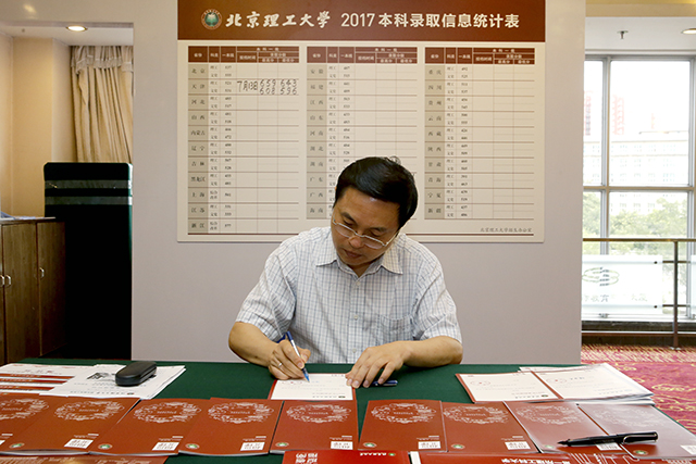 胡海岩审阅了今年录取通知书、招生录取工作手册、报考指南、宣传海报、各省宣传单页等资料,对学校本科招生细致的宣传工作和规范的录取工作程序给予了充分肯定。为表达学校对人才培养的高度重视,欢迎和激励广大优秀学子报考BB贝博,胡海岩现场为BB贝博待录取的各省份文、理科最高分考生亲手签发了录取通知书,并提议部分优秀新生可由各招生组老师亲自联系并将录取通知书送至其手中,增进新生对学校的感情。在录取现场,胡海岩查看了普通一批已经投档省份的生源情况,查阅了部分考生的档案。