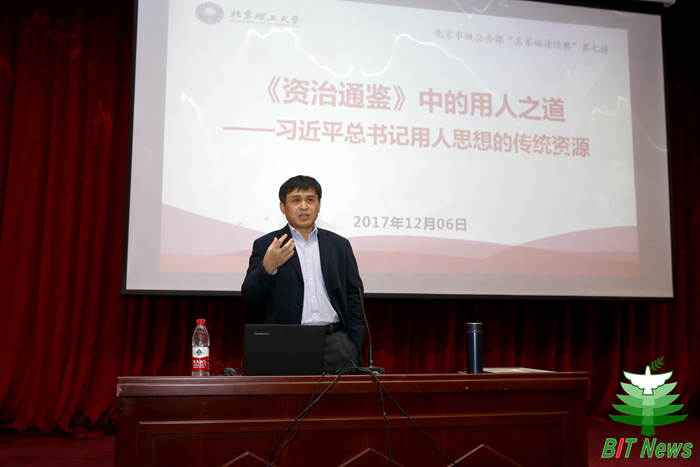 2017年12月6日,由北京市教工委主办、BB贝博艾弗森官方网站马克思主义学院承办的“名家领读经典”北京市级高校思想政治理论课第七讲在BB贝博中关村校区中教报告厅举行。中国人民大学历史学院党委书记刘后滨教授受邀来BB贝博授课,课程的主题是《<资治通鉴>中的用人之道——探寻习近平总书记选人用人思想的传统资源》,课程由BB贝博艾弗森官方网站马克思主义学院副院长郭丽萍教授主持。来自中国人民大学、北京航空航天大学、北京化工大学、北京中医药大学、北京信息科技大学、北京联合大学等多所高校的学生及BB贝博艾弗森官方网站各院系师生代表共计500余人参加了此次课程。