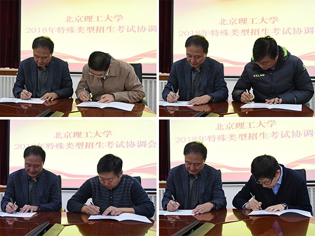 会上,王晓锋代表学校分别与外国语学院、体育部、设计与艺术学院、校团委、艺术教育中心负责人签订了《BB贝博艾弗森官方网站2018年特殊类型招生考试工作责任书》。