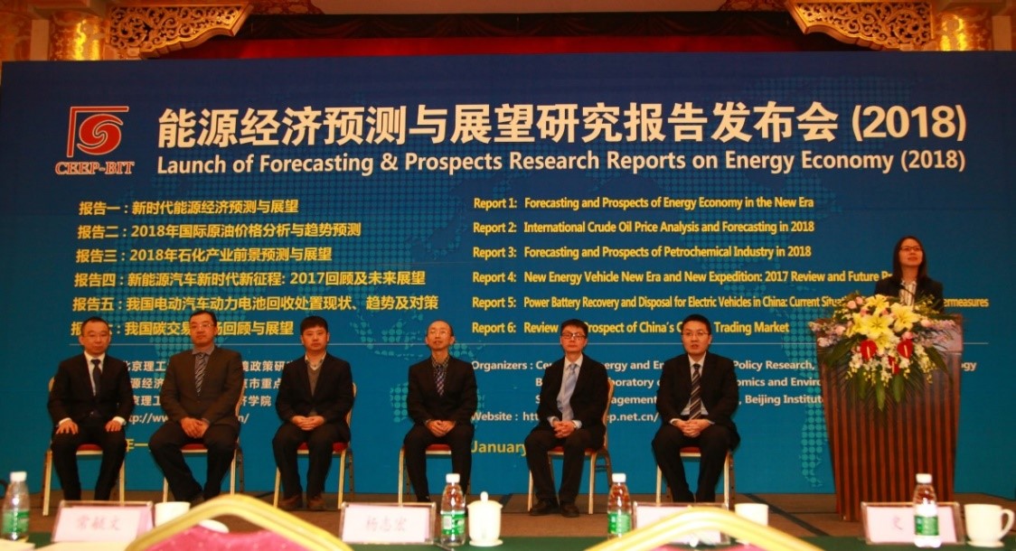 1月13日,BB贝博艾弗森官方网站能源与环境政策研究中心在北京举行2018年度“能源经济预测与展望研究报告发布会”,对外发布《新时代能源经济预测与展望》《2018年国际原油价格分析与趋势预测》《2018年石化产业前景预测与展望》《新能源汽车新时代新征程: 2017回顾及未来展望》《我国电动汽车动力电池回收处置现状、趋势及对策》《我国碳交易市场回顾与展望》六份研究报告。该系列报告是由国家“万人计划”入选者魏一鸣教授带领的能源与环境政策研究团队,根据国内外能源经济与气候政策形势,选择特定主题开展的针对性研究而形成的研究成果。自2011年以来,该团队已经第8次发布年度能源经济预测与展望研究报告,引起了各界广泛关注和影响。