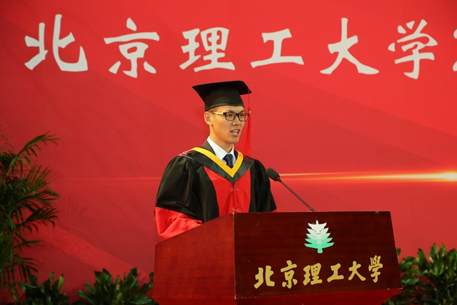 木有本而枝茂,水有源而流长。北理工深厚的历史底蕴和辉煌的办学历程,让我们深深感受着浓厚的延安精神和文化传承。此刻,我要感谢母校,她为我们烙印上北理人的使命和荣光,我们也将以更积极、更自信的姿态迈向世界,用我们所学所长,为国防事业、科技发展谱写最动听的乐章,用我们的努力和成绩担当起民族复兴大任。