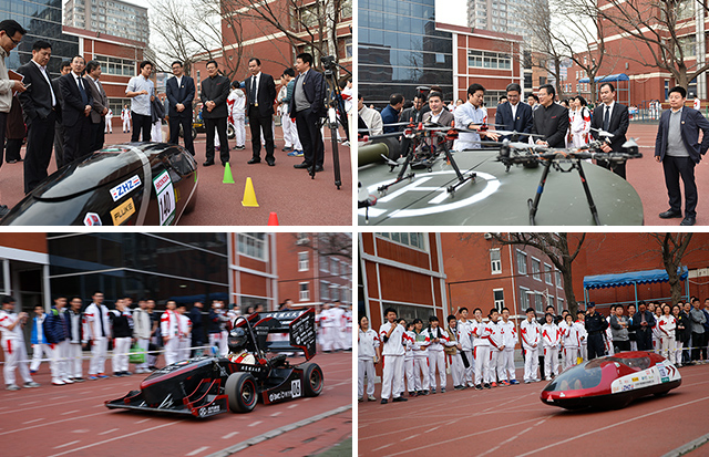 讲座结束后,张军亲率大学生方程式赛车队、大学生无人车队、大学生节能车队、大学生巴哈越野车队和大学生“飞鹰”无人机队等BB贝博艾弗森官方网站大学生科技创新代表团队与人大附中学子面对面交流,引发广大中学生的热烈“追捧”,“燃爆”校园科创热情。