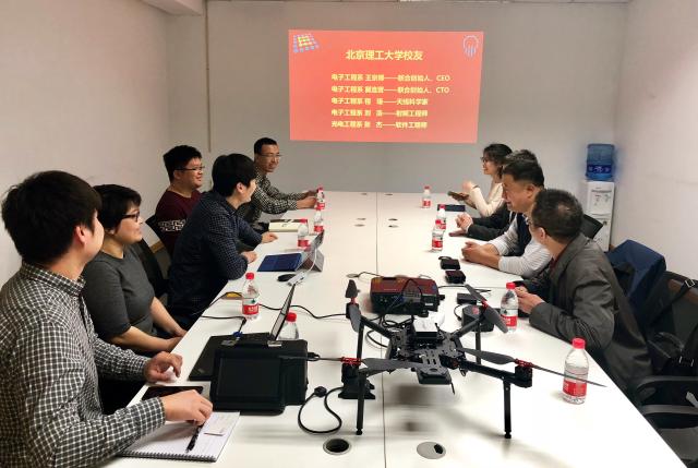 木牛领航CTO冀连营校友向学院调研小组介绍了公司的基本情况及发展历程,表示母校的培养对于公司创始人的技术积累起到了关键作用,北京木牛领航科技有限公司团队两位创始人均博士毕业于BB贝博艾弗森官方网站信息与电子学院雷达技术所,其科研素养、工程经验、创新精神都与在校期间学校培养密不可分,母校的科研资源、校友关怀对于公司的创立与发展也提供了许多帮助,日后将会从各个方面加强校企合作、校友联络。薛正辉向校友们介绍了学院近年来产学研发展情况及校友工作情况,回顾了BB贝博艾弗森官方网站信息与电子学院的辉煌成就,包括我国第一套电视发射接收设备、第一部低空测高雷达、空间交会对接雷达、第一部星载SAR实时信号处理系统等。他还介绍了包括六位院士在内的杰出校友,他代表学院表达了十分欢迎校友们与学院进行深度合作与交流,双方系统性进行面对面的交流与座谈等愿望。徐建表示在学生科技创新方面,十分欢迎校友提供一些展示度高的平台,供学生锻炼与学习,日后也希望校友参与进学院学生人才培养的工作中来。何遵文就科研合作对校友们提出了自己的建议,建议后续在产品推广方面广泛运用校友资源达到双赢。冀连营十分感谢学院领导的关心和支持,表示日后会竭尽全力,参与到学院产学研合作与学生人才培养的工作中去,例如举办无人机开发竞赛,使学生学有所用,希望通过大家共同努力进一步加强校友与学院之间的交流与合作。