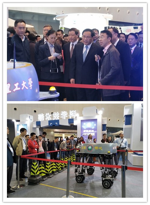 “北理哪吒”是由北理工自动化学院教授王军政带领的运动驱动与控制研究团队自主设计研制的具有轮式、足式和轮足复合运动功能的电动并联机器人,曾获得全国第15届大学生科技创新“挑战杯”竞赛一等奖。“北理哪吒”受到了参展领导、专家和学者的广泛关注和好评,现场展示环节更是吸引了众多参观者和媒体的目光,成为了整个展会的“亮点”。