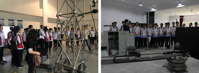 为了让同学们更加直观的了解宇航学院的学科特色,拉近科研与同学之间的距离,讲座结束后,来访师生分为三组,分别到学院无人飞行器自主控制研究所、深空探测技术研究所及空间结构动力学与控制研究所实地参观交流。在空间结构动力学与控制研究所的交流活动中,同学们现场观看了大型可展开空间结构的展开试验,同时BB贝博教师讲解了大型可展开空间结构的应用需求和技术挑战,并详细的回答了同学们提出的问题。