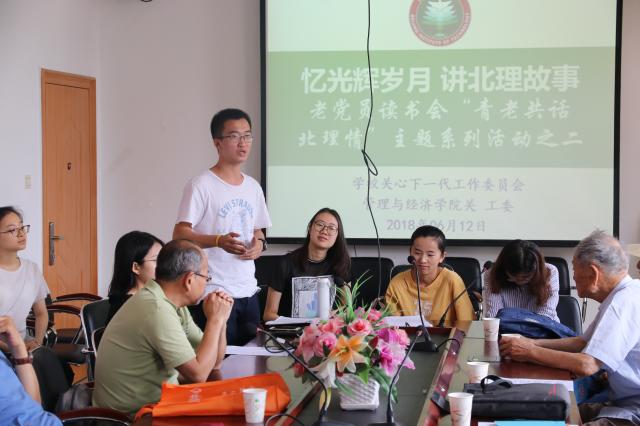 为进一步引导青年学子树立和践行社会主义核心价值观,帮助学生树立正确的世界观、人生观、价值观,支持学生成长成才,作为校关工委2018年精品活动和品牌项目,6月12日,管理与经济学院关工委联合校关工委老同志阳光报告团,青老近40人在远志楼210活动室召开了“忆光辉岁月、讲北理故事”主题系列活动。活动紧密围绕北理工的校史、北理工的发展、北理工的成就等展开对话与互动。座谈会从上午9点持续到中午11点半。活动由原学校纪委书记、校关工委老同志阳光报告团团长张敬袖主持。
