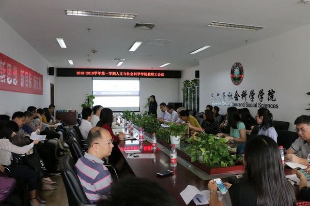 9月13日上午,人文与社会科学学院2018-2019第一学期全体教职工大会在良乡校区图书馆五层会议室召开。副校长李和章,学院班子成员,人文与社会科学学院、原艺术教育中心全体教职员工参加了会议。