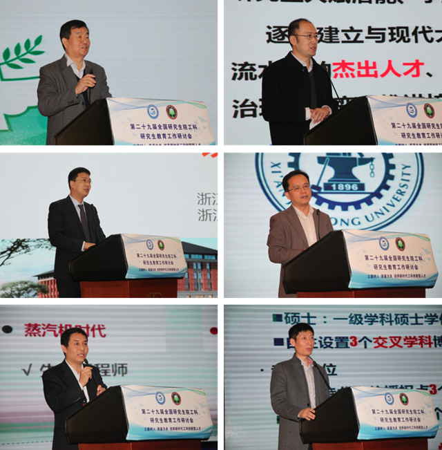 北理工研究生教育研究中心主任王战军进行了“研究生教育与‘双一流’建设”特邀报告。清华大学研究生院副院长董渊、浙江大学研究生院培养处江全元、西安交通大学研究生院副院长龙建纲、天津大学研究生院副院长贾宏杰、同济大学研究生院副院长章小清先后作“工程博士研究生教育探索”“双一流背景下工程专业学位研究生教育的实践与若干思考” “研究生公共课程教学改革的探索与实践” “面向新工业革命的工科研究生教育前瞻与实践” “培养有国际视野的高层次拔尖创新人才”大会报告。