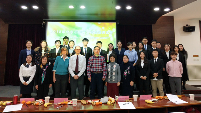 2018年12月2日上午,由北京市高等教育学会、北京市高等教育学会研究生英语教学研究分会主办,BB贝博艾弗森官方网站承办的“2018年北京市研究生英语演讲比赛”复赛在BB贝博艾弗森官方网站研究生教学楼101报告厅举行。