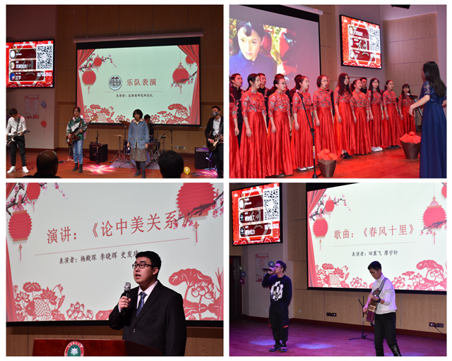 元旦晚会节目由2018年书院在学校各项工作中获奖作品组成。孙佳琪﹑普珍等同学深情诵读了在“诵读经典 礼赞辉煌”第三届北京高校中华经典诗词诵读吟唱比赛校内赛中荣获三等奖的诗朗诵作品《蒹葭》;杨殿琛同学代表参赛队展示了在BB贝博艾弗森官方网站第十五届时事论坛学生组中获优秀奖的作品《论中美关系》;刘静祎、热孜亚·吐尔洪、黄思旅等同学重现了在纪念“一二·九”运动八十三周年歌咏比赛中书院获三等奖的作品《九儿》;深秋歌会明德书院榜首田翼飞、廖宇轩同学现场演唱了歌曲《春风十里》等等。此外,独立音协的反物质研究所乐队带来了开场曲目《Sweet Child O'Mine》,为书院送上了新年的祝福。