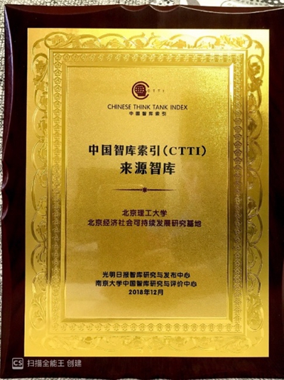 北京经济社会可持续发展研究基地入选CTTI来源智库