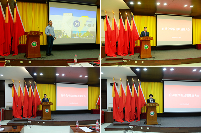 随后,学院领导班子分别就个人本年度分管工作作述职述廉报告,总结履行职责、完成工作、主要业绩和廉政自律等相关情况。